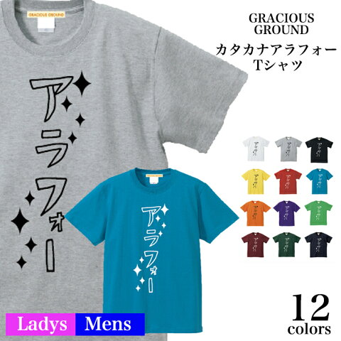 【メール便 送料無料】カタカナ アラフォー Tシャツ 半袖 メンズ レディース お友達 兄弟 姉妹 お揃い カップル 夫婦 ペアルック 37歳 38歳 39歳40歳 41歳 42歳 43歳 44歳 45歳 46歳 誕生日 バレンタインデー ギフト