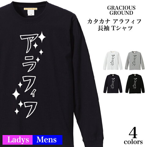 【メール便 送料無料】カタカナ アラフォー Tシャツ 長袖 メンズ レディース お友達 兄弟 姉妹 お揃い カップル 夫婦 ペアルック 37歳 38歳 39歳40歳 41歳 42歳 43歳 44歳 45歳 46歳 誕生日 バレンタインデー ホワイトデー ギフト 5.6オンス 袖リブ