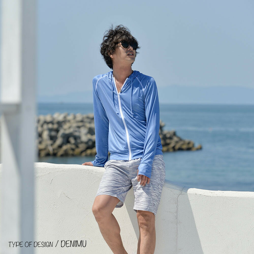 送料無料ラッシュガード ラッシュパーカー メンズ 長袖 フード付き フィンガーホール付き ラフラッシュガード 紫外線対策 UVカット UPFカット 日焼け予防